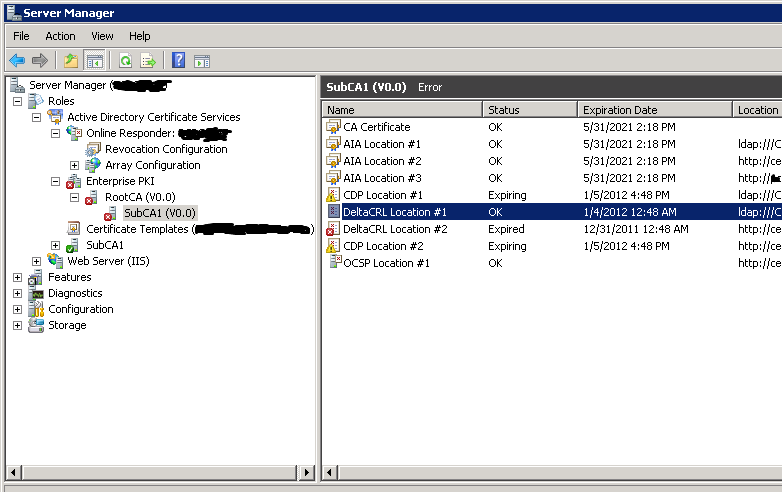 En el proceso de chequeo del estatus de revocación de un certificado, el sistema tratará de recuperar la CRL y la Delta CRL de cada ruta definida en los Puntos de Distribución de la CRL (CDP). Normalmente definiremos, al menos, una ruta LDAP y otra HTTP, por lo tanto tratará de recuperar la CRL y Delta CRL de ambas rutas y, en nuestro caso, despues de una restauración, éstas son distintas, con el consiguiente error de “Certificado Revocado”